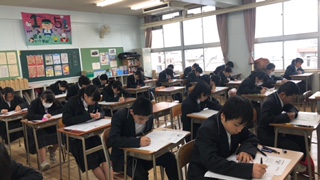 本日、来年1月10日に実施されます学びチャレンジテスト対策として、プレチャレンジテストを行いました。1年生は、国数英の三教科です。みんな真剣に問題に取り組んでいました。