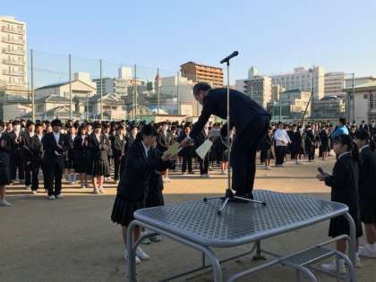 本日、朝の全校集会で賞状伝達が行われました。