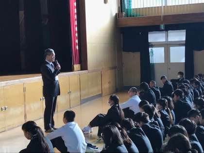 生活指導部長の山田先生より、冬休みの心構えのお話がありました。