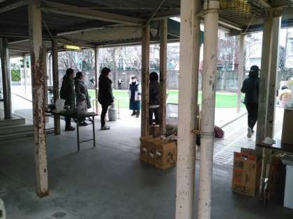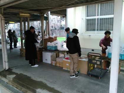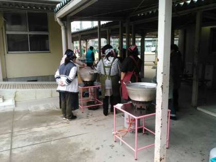 写真は炊き出しの様子です。
