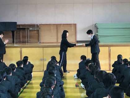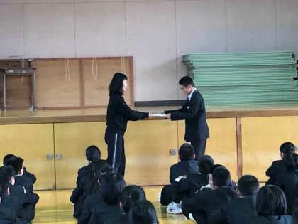 本日、学年集会で表彰を行いました。
