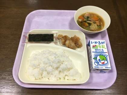あげ鶏のねぎソースかけ あつあげとはくさいの中華煮 焼きのり 米飯 牛乳