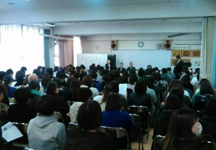 本日、15時より本校多目的室にて新入生保護者説明会を行いました。たくさんの保護者が来校され、説明会後に体育館で物品の購入もありました。