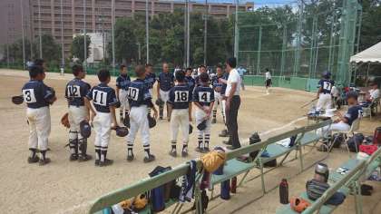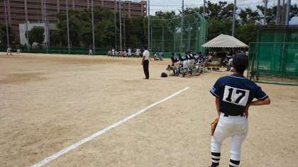 大阪市秋季大会予選の三回戦は港中学校で行われ、本校は6対6のタイブレイクとなり8回は、共に無得点で抽せんとなり、残念ながら市大会への出場はかないませんでした。