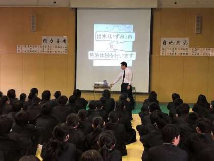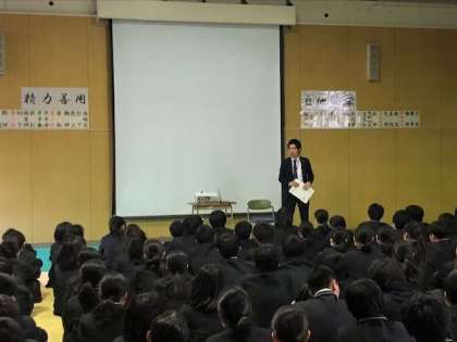 2年生では6時間目に武道場で来年度の修学旅行についての説明を行いました。