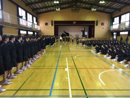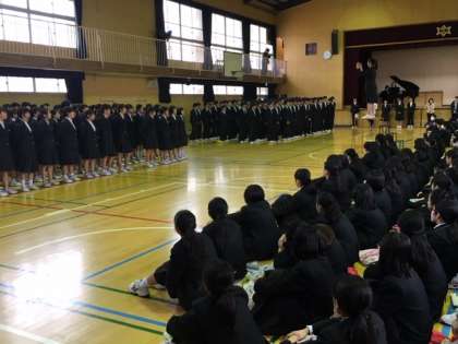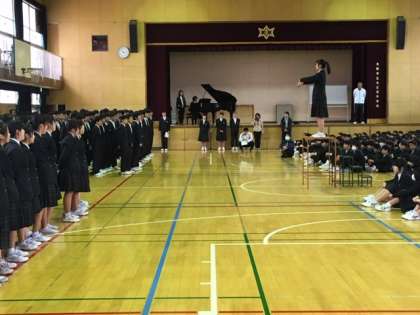 3年生による、1・2年生への歌「正解」の合唱の様子です。