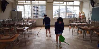 本日2限目、3年生は登校した生徒だけで教室のワックスがけをしました。
