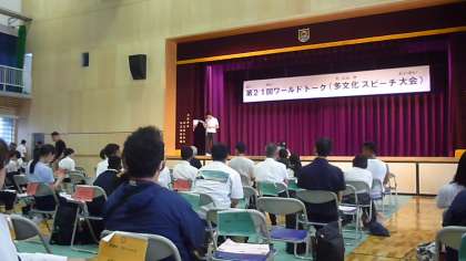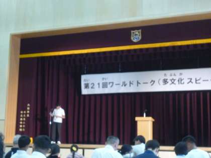 先週の土曜日、中之島小中一貫校で、第21回ワールドトークが開催されました。このワールドトークは外国籍の生徒が集まり、母国のクイズを出したり、多文化交流を行います。