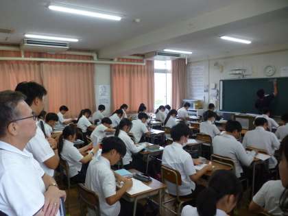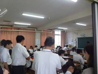 今日の6限目 3年2組の社会科の授業では、石田先生の研究授業が行われています。大阪市の社会科の新任教員2年目の教員と、大阪市総合教育センターより指導主事も来校され、授業観察にきています。
