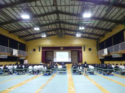 本日の5、6限目、3年生は性教育と体育館で行いました。助産師の津田育久子さんを講師に迎えて、自分の心と体を大事にすることと同時に、他人の心と体も大事にすることについてお話いただきました。