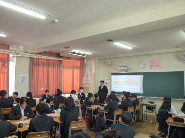 今日の1年生の5、6限目は、各教室にて「SNSを介した犯罪防止のための弁護士出張授業」を行っています。大阪弁護士会より古川 純平弁護士、逢澤 縁太郎弁護士、萩野 数馬弁護士、志智 哲弁護士、福栄 泰三弁護士に来ていただき、各教室にお人ずつはいっていただき、授業をしていただいています。
