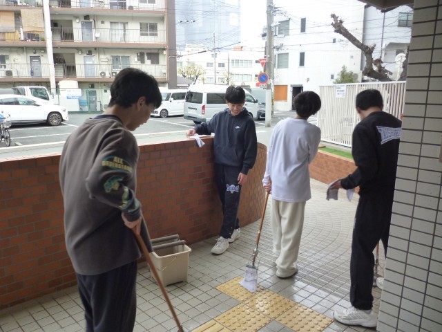 寒い中、掃き掃除だけでなく、ぞうきんでモップ掛けや正門の扉もふいてくれました。