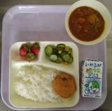 ごはん 牛乳 ポークカレーライス チキンレバーカツ(中) きゅうりとコーンのサラ...