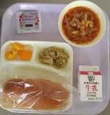 パン 牛乳 豚肉のカレー風味焼き ミネストローネ ミックスフルーツ(缶) いちご...