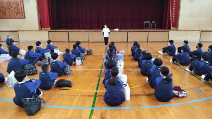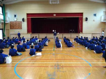 校長先生から、楽しい一泊移住にするために「相手の気持ちを考えて行動すること」「安全に学校に戻ってくること」を守りましょうと、お話がありました。