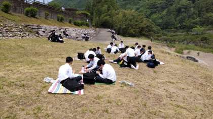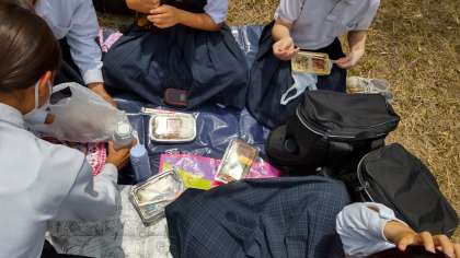 だいしぜんの中で、朝早くから保護者の方が作ってくれたお弁当を美味しくいただきます!!