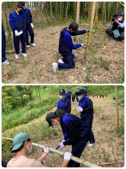 竹を切る班、生地を作る班、火をおこす班にわかれての活動です。