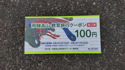 今回は、高山市から教育旅行クーポン券1,000円分をいただきました。