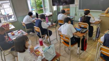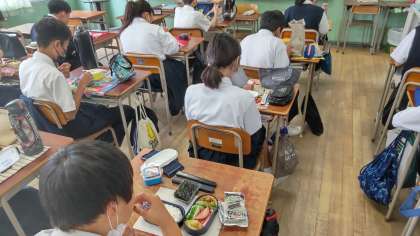今日は、給食の提供がなかったので、各家庭からお弁当を持参しての昼食となりました。