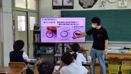 ポスターカラーの塗り方のコツについて、学習しています。
