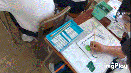 今日は2色を混ぜた色を使って筆を使う練習をしました。