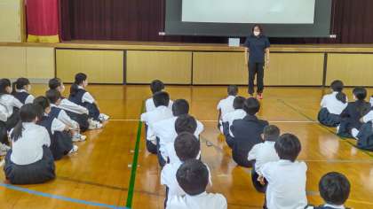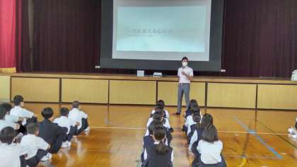 体育科の先生から、熱中症対策としてマスクの着用の仕方について、お話がありました。