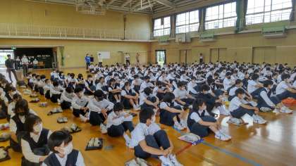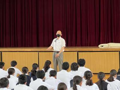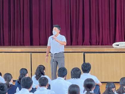 学校長講話のあと、生活指導の先生から「学校のルール」について、お話がありました。