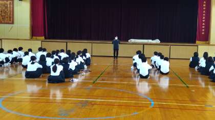 8:25の予鈴のチャイムまでに集合完了し、担当の先生のお話がはじまっていました。