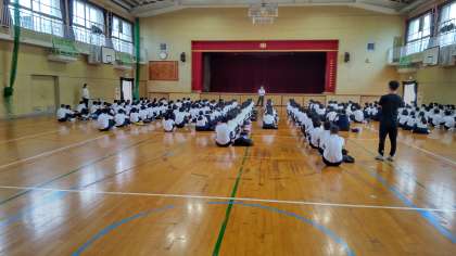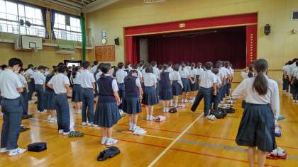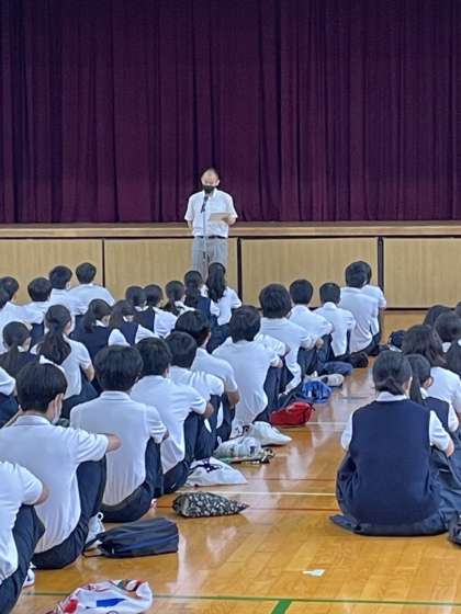 学校長講話のあと、生活指導の先生から、学校のルールについてお話がありました。