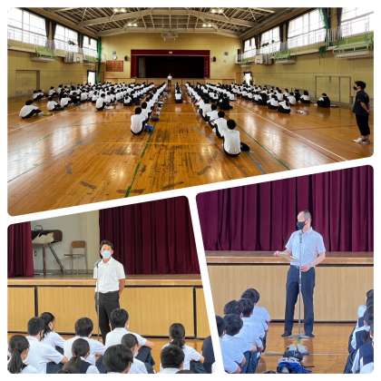 学校長の講話のあと、生徒指導主事から「自分自身を大切にしよう」とお話がありました。