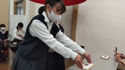 本校の茶道部がお点前を披露しました。