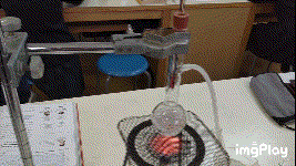 水とエタノールの混合物から、エタノールを取り出す実験を行いました。