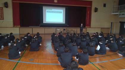 大阪菅公学生服株式会社より講師の方にお越しいただき、服の役割、制服(標準服)がある意義、場にふさわしい着装やマナー面について講演していただきました。