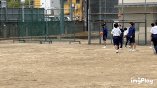 ハンドボール投げをしています。