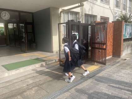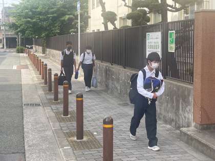 爽やかな朝の登校風景です。