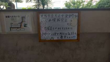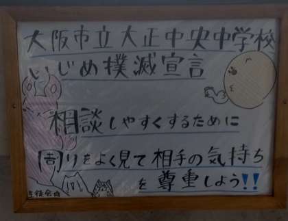5月の「いじめ・いのちについて考える日」の時に各クラスで考えた「いじめ撲滅宣言」を生徒会がまとめて、「大正中央中学校 いじめ撲滅宣言」を完成させました。