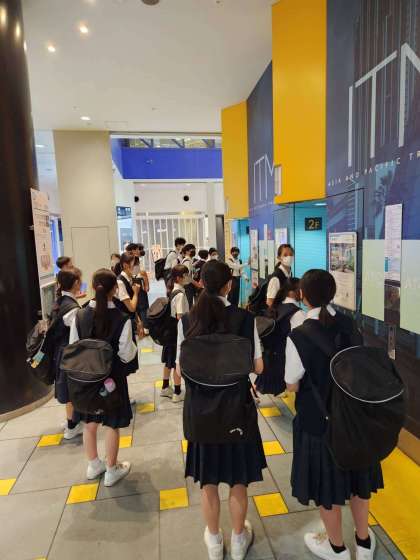 グリーンエコプラザで環境についてのお話を聞いています。
