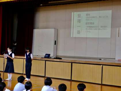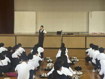 全校集会で生徒指導主事より、
