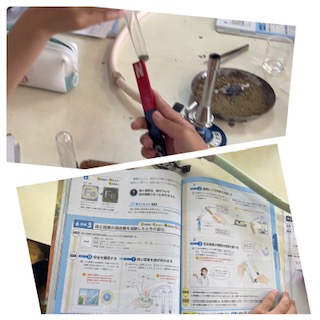 塩酸を試験管に入れて反応を観てます。
