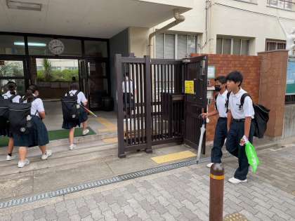 給食喫食後に下校します。