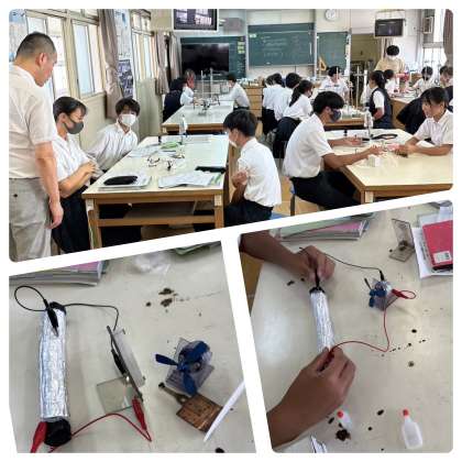 炭素棒に食塩水を染み込ませたキッチンペーパーに