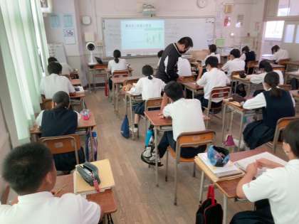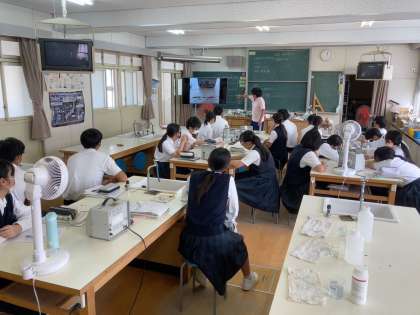 理科はイオンなどの化学実験、家庭科は子どもの発達について学習しています。