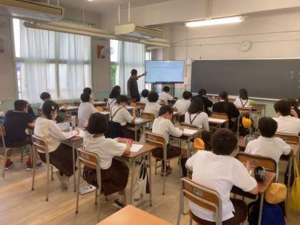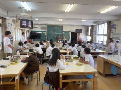 平尾小学校の皆さんは理科の授業と数学の授業を体験しています。