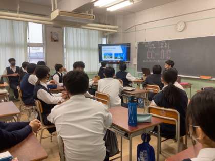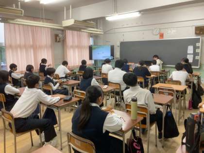3クラスをオンラインミーティングツールで繋ぎ同じ学習を展開しています。