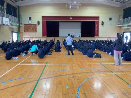 本日の全校集会では、生活委員会から生活アンケートの報告がありました。