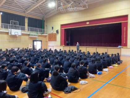校長先生のお話、生徒指導主事の先生のお話がありました。