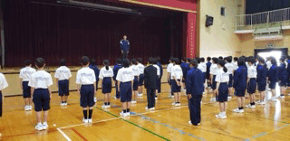 基本の挨拶、方向変換などを男女共習で練習しました。