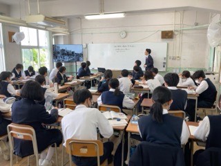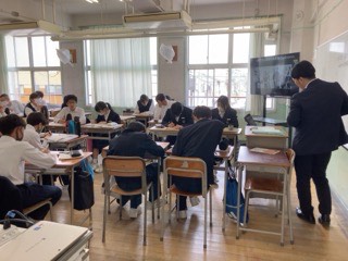 ワールドカフェ方式で周囲と相談しながら発言しています。