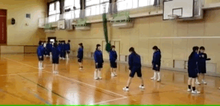 女子はラジオ体操テストのグループ練習にそれぞれグループごとで工夫しながら取り組んでいます。