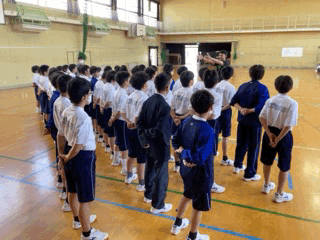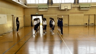 男子は四列横隊や体操隊形の練習、女子は四列横隊や三列横隊の練習をしています。